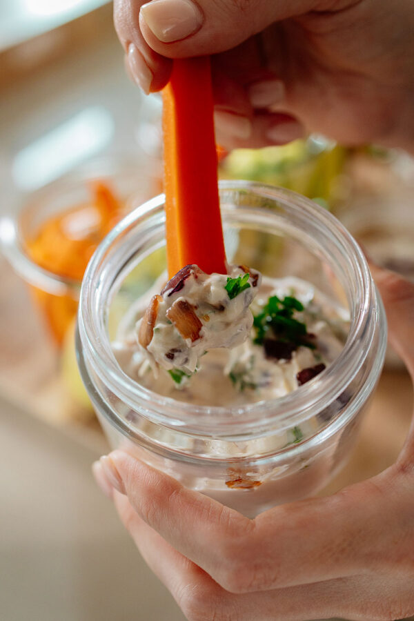 CARAMELIZED ONION YOGURT DIP WITH VEGGIES