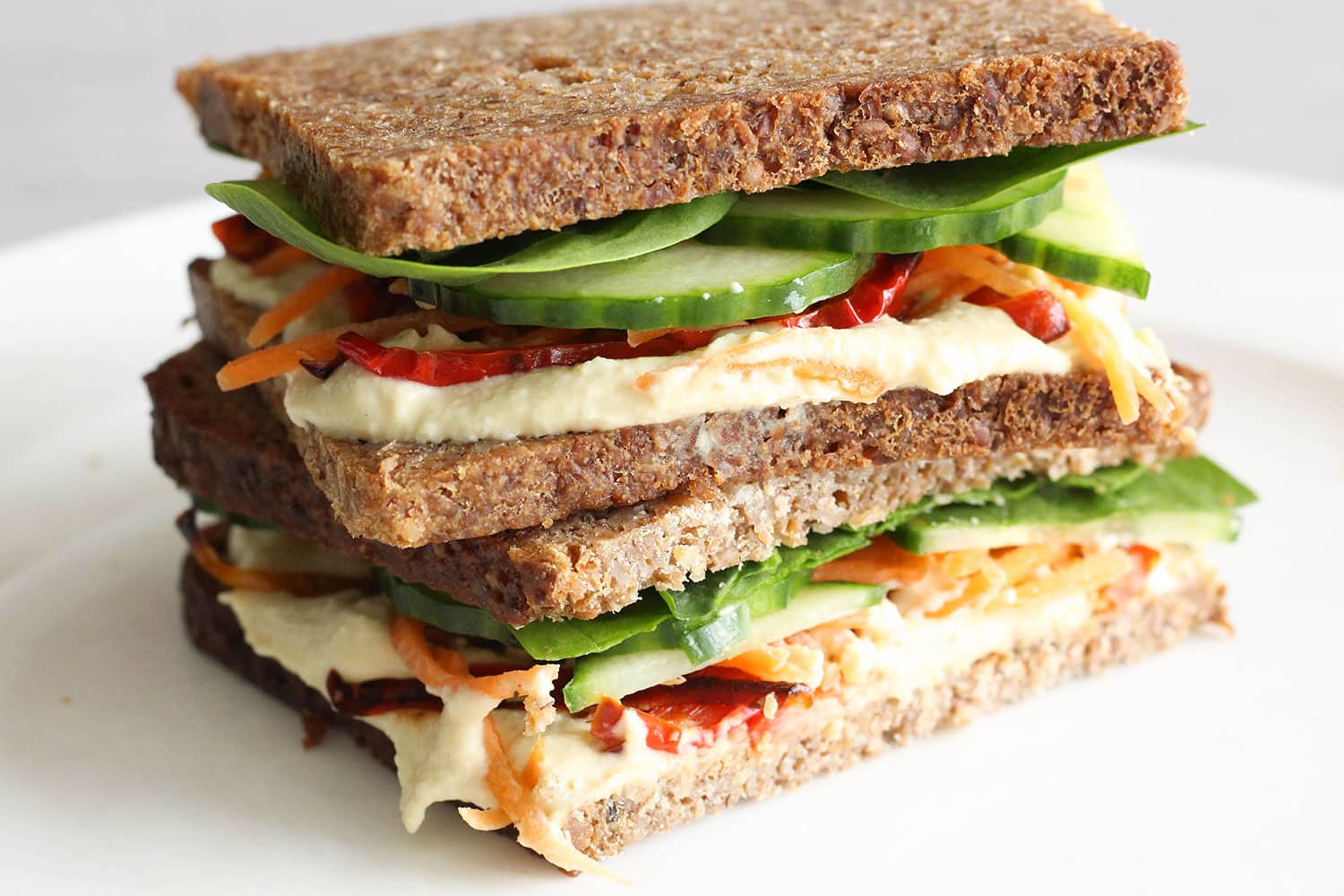 (FOODIE PIC): My favorite (healthy) spicy roasted red pepper and hummus salad sandwich – recipe here on my blog!