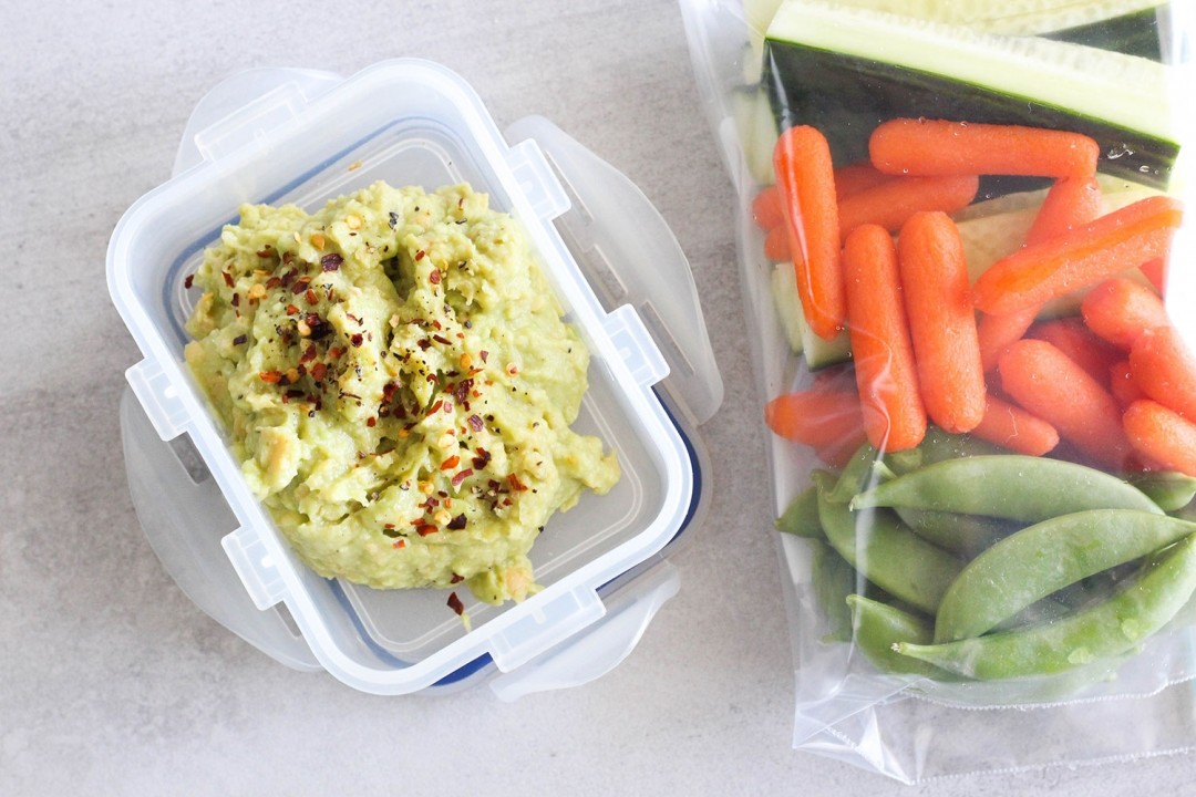 (FOODIE PIC): Tasty avocado and chickpea dip, to go with my fave raw veggies (cucumber, carrots and snap peas) – recipe here on my blog!