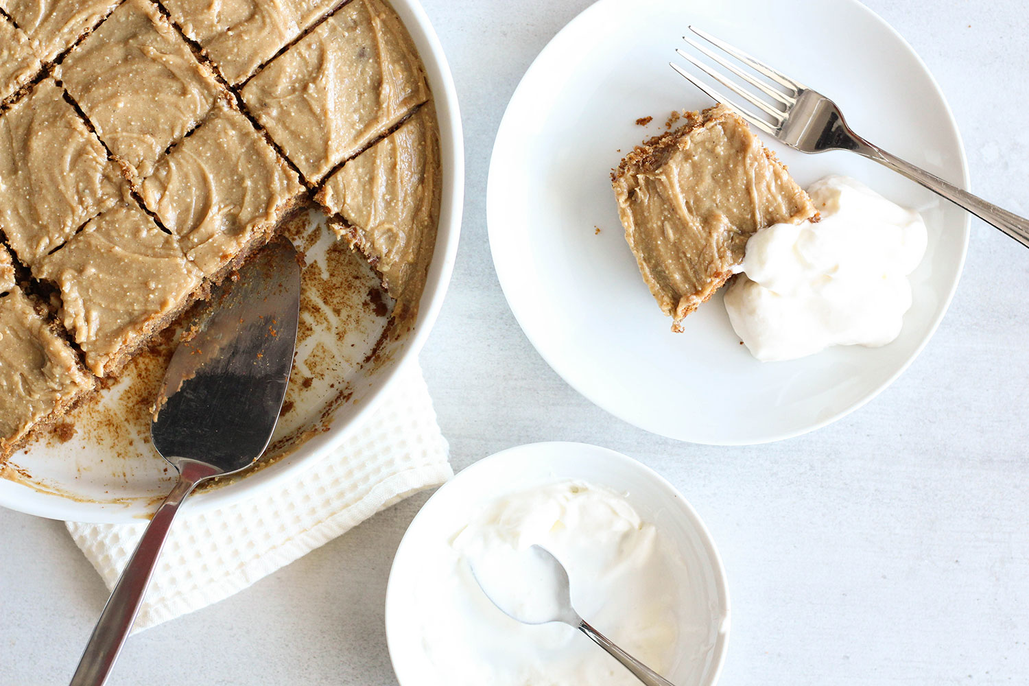 I love having a slice hot out the oven with healthy coconut cream (but it’s just as good served later at room temp).