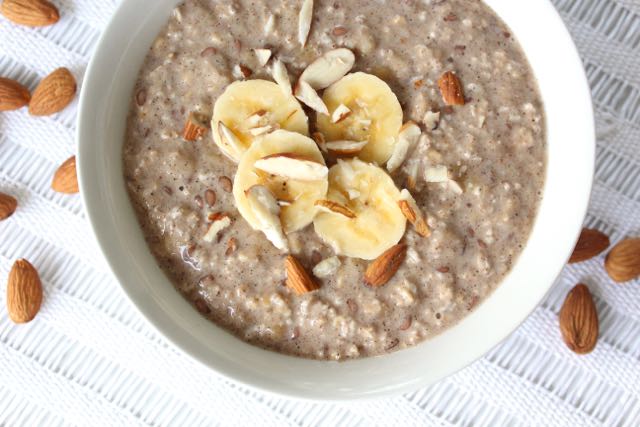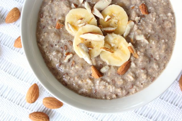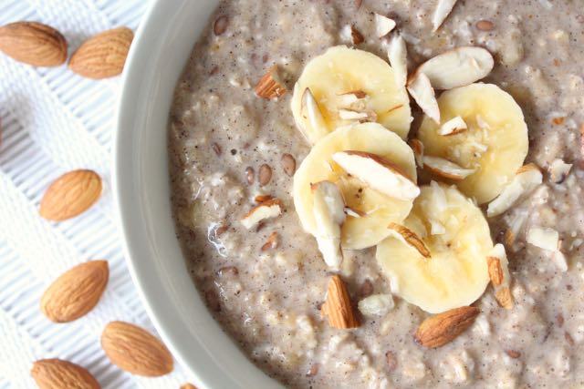 Here’s how I make my banana, flax & almond oats…