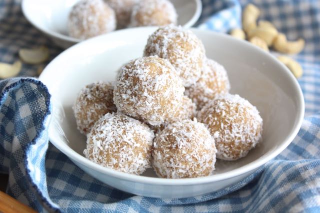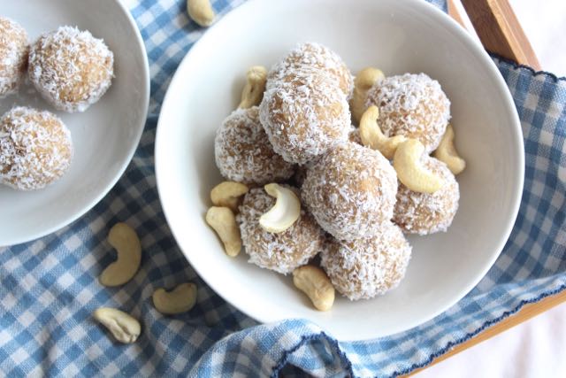 These cashew & coconut bliss balls have been one of my favourite healthy treats to make for the past few weeks because they are genuinely really easy to make, and they’re totally delicious!