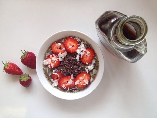 Chocolate, coconut & strawberry chia pudding: