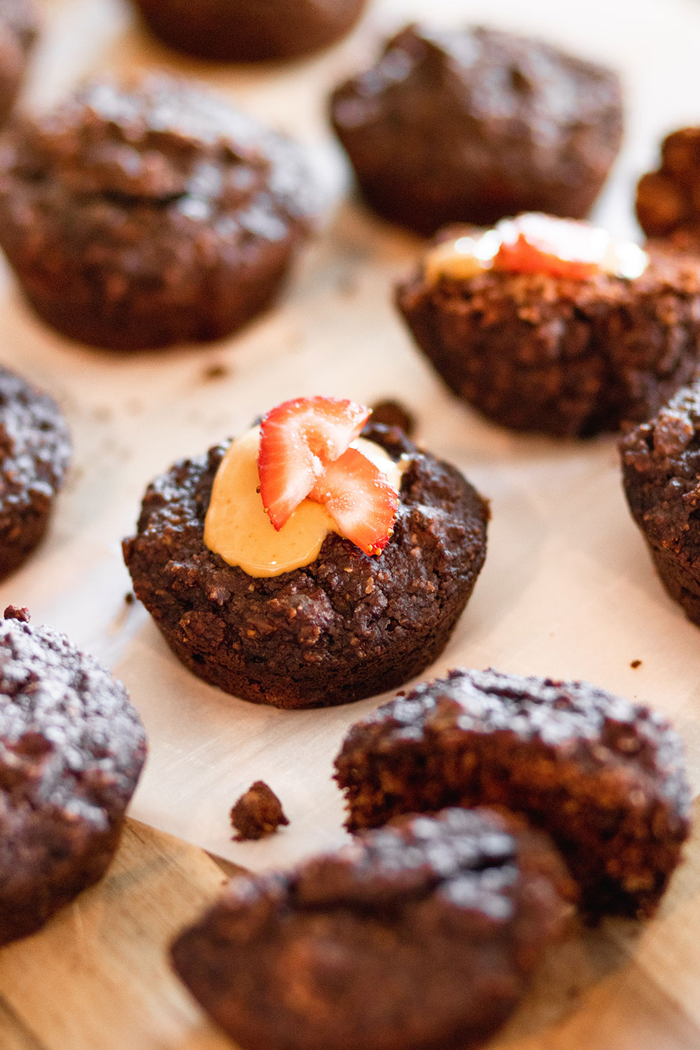 18. I store the rest of the muffins in a separate airtight container in the fridge to keep fresh -Top with almond or peanut butter and strawberry slices (optional, but not necessary)