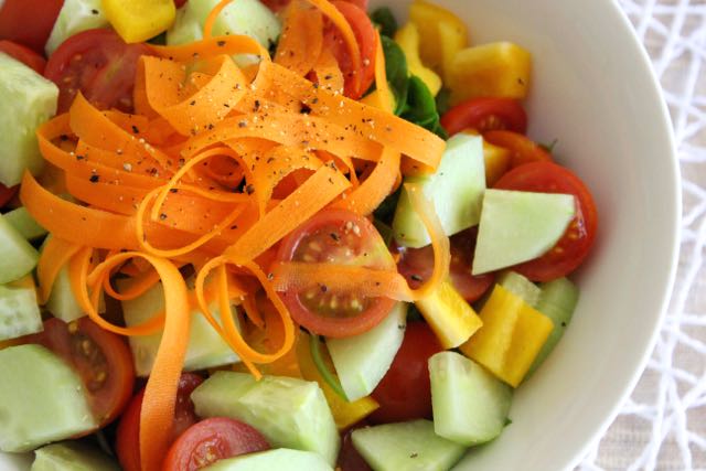 -peel the carrot and then use the peeler to make carrot ribbons (you make the ribbons the same way that you peel the outer part of the carrot)