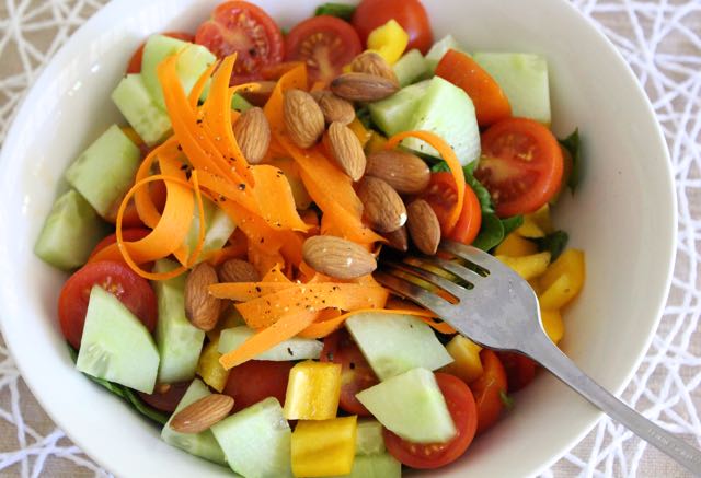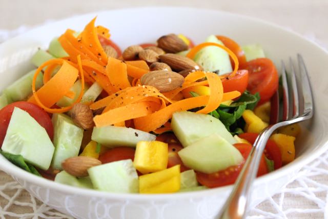 This is without doubt the easiest salad recipe – it’s also super healthy and delicious (I love the combination of ingredients) …and that is why it is my go-to salad. I make this salad ALL the time, if you follow me on Instagram or Facebook you will see me posting a quick snapshot of my go-to lunch quite often!