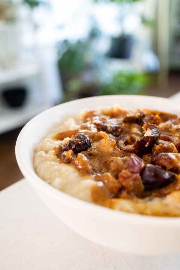 Caramel was my favorite flavor as a kid, but we’re making a healthier version using dates! They have a great caramel-like flavor, but are much healthier for breakfast!