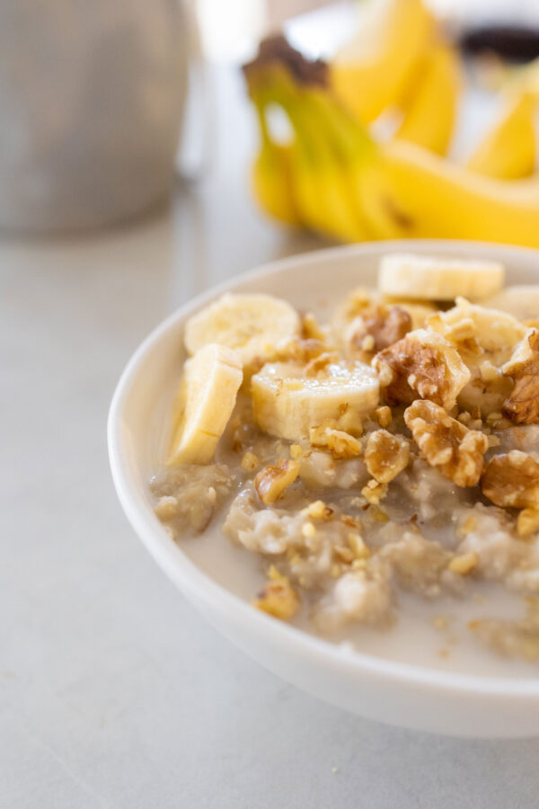 This is not just gonna be sliced banana on top of oatmeal! This one tastes like fried banana, it’s super creamy and every time I make it, it’s more delicious than I remember.