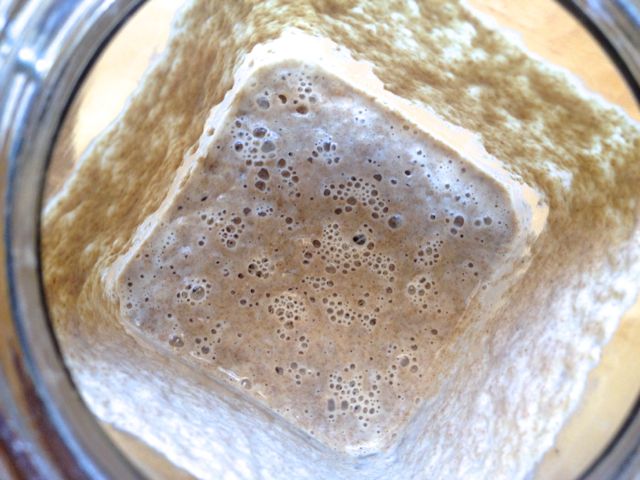 -on day 7 the rye sourdough starter should be bubbly, fermenting (smelling sour – this is good!) and ready to use, however, if the jar was stored in a place that was not warm or humid enough then the process (see day 3) may need to be repeated another day or for a few more days