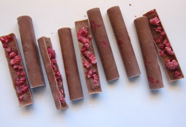 Chocolate-raspberry ice lolly bites: