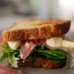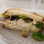 CHICKEN SALAD SANDWICH: Chicken salad sandwich with roasted chicken, salad dressing, salad mix, roasted pepper + onion mix (+ accessories: bread, mayonnaise)