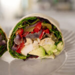 CHICKEN SALAD WRAP: Wrap with roasted pepper + onion mix, salad mix, roasted chicken, salad dressing (+ accessories: tortilla, avocado)