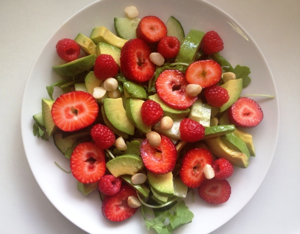 Raspberry, Strawberry, Avocado & Macadamia Salad