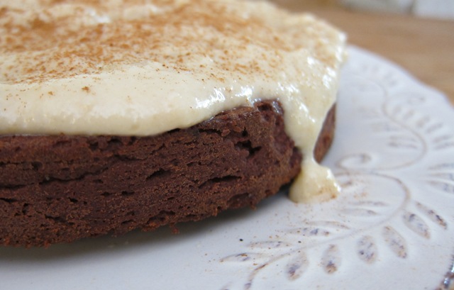 -grease a round cake pan with extra coconut oil (I use one that is 20cm in width) and pour the cake batter into it
