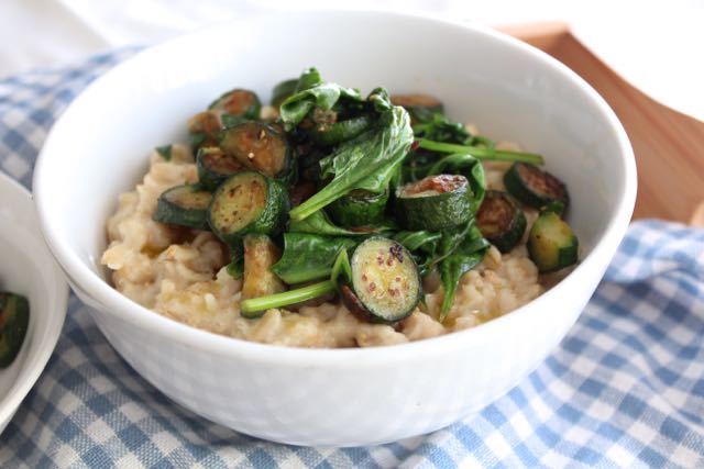 I remember the first time that I ever heard about savory oatmeal. I was busy reading Cameron Diaz’s The Body Book, and in her book she mentions how she loves to make savory oatmeal for breakfast!
