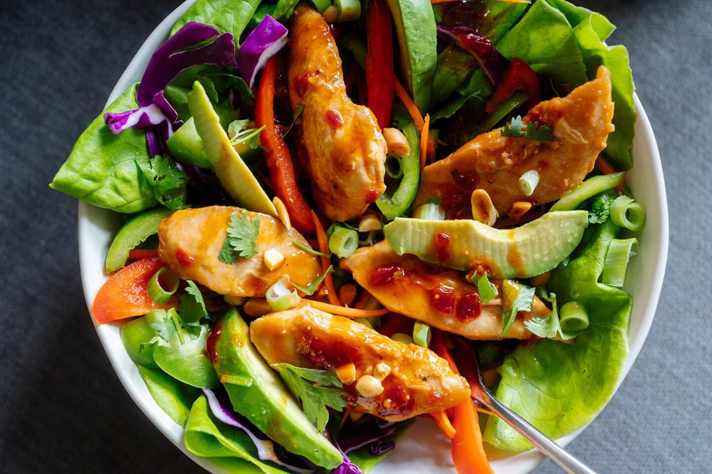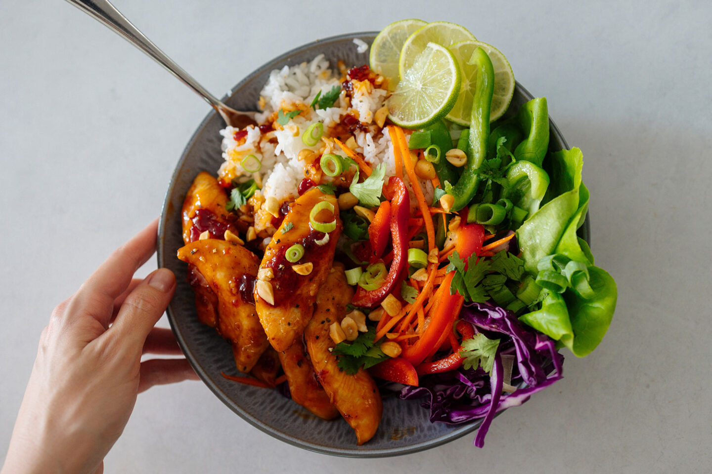 In this post and video, I’m sharing my 20 minute “bare minimum” meal prep! I’m making sticky thai chicken in 20 minutes and then I’ll have 4 different meals to eat throughout the week: a thai chicken bowl, a thai chicken salad, a thai chicken wrap, and a thai chicken sandwich. I love it for no-repeat meals!