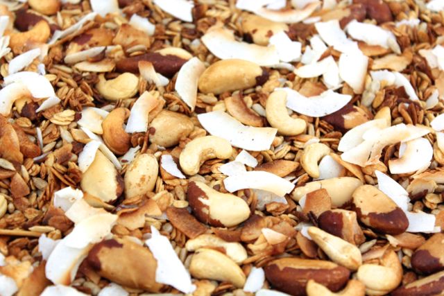 -add the coconut flakes, cashew nuts & Brazil nuts to the mix