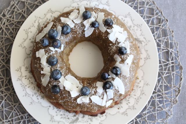 -sprinkle additional desiccated coconut and a few coconut chips over the cake (optional – but it’s super yummy & it makes the cake extra coconutty)