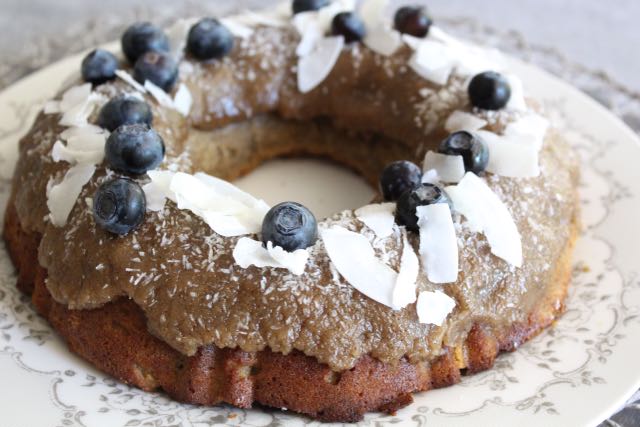 A deliciously decadent, moist & surprisingly nutritious vanilla coconut cake with a super creamy caramel frosting.