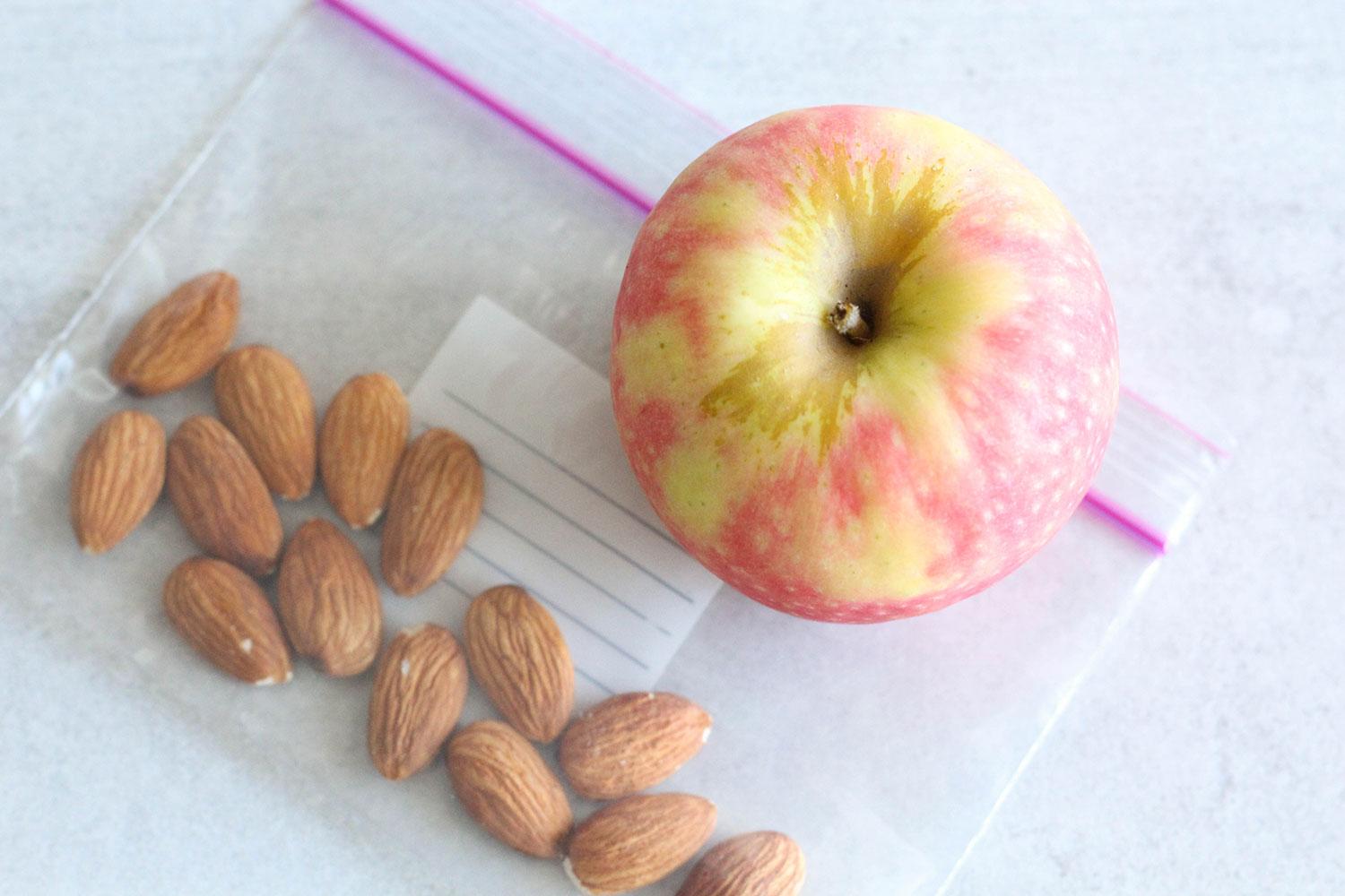 For your snacks, you’ve got a different fruit and nut combo that you can pick for each day (or another 200 calorie snack of your choice).